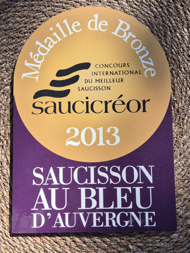 Ce saucisson au Bleu d’Auvergne est issu d’un savoir-faire artisanal reconnu, récompensé par une Médaille d’Argent en 2025 lors du concours Saucicréor.
