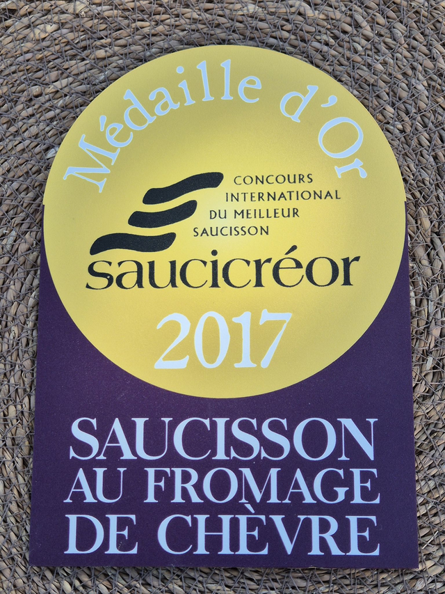 Ce saucisson au fromage de chĂšvre est le fruit dâun savoir-faire artisanal dâexception, couronnĂ© par une MĂ©daille dâOr en 2017 lors du concours international SaucicrĂ©or.